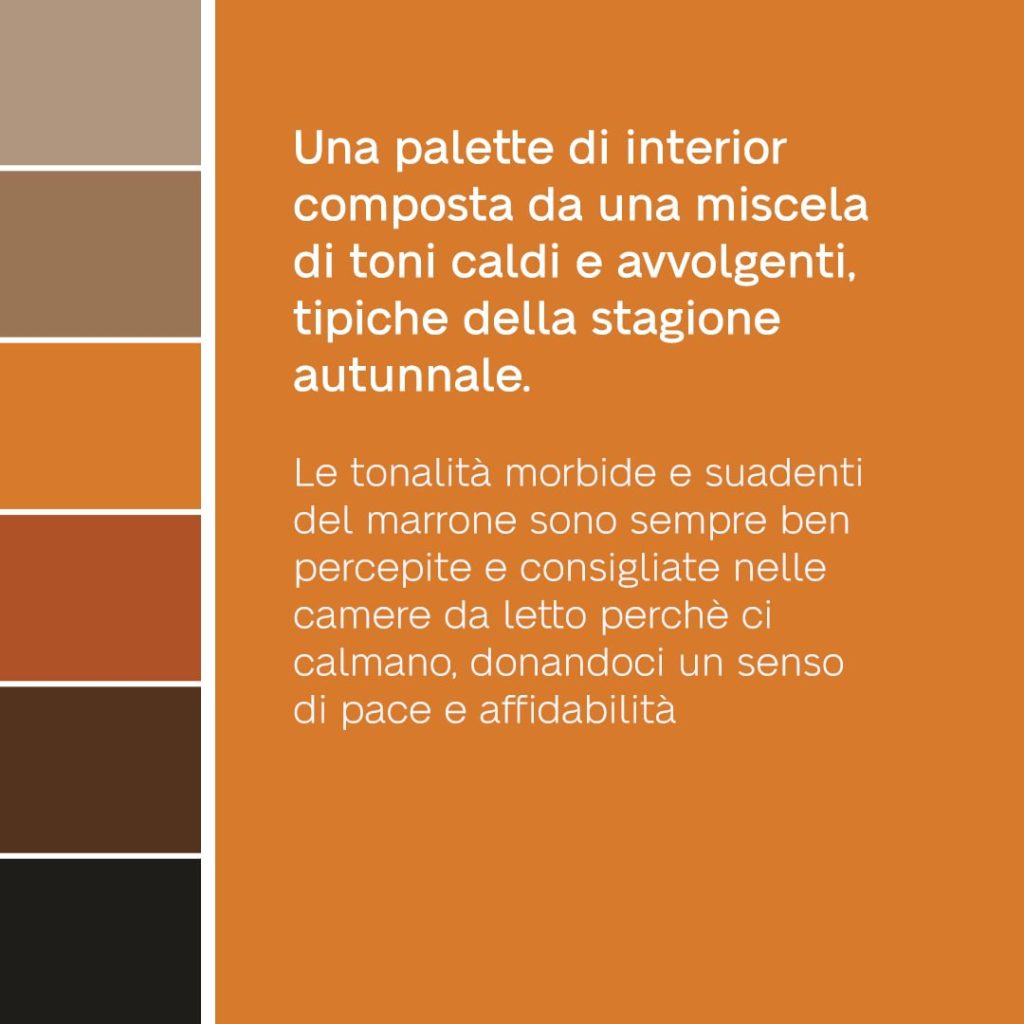 Numerose ricerche dimostrano che il colore della camera da letto influenza molto la qualità del sonno. L’autunno con la sua palette di toni caldi e avvolgenti può venirci in aiuto quando si tratta di scegliere il colore per la camera da letto.
